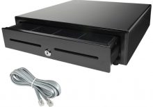 This sturdy, full-size all metal construction QuickBooks POS cash drawer from MMF is lockable for extra security, has dual media input slots, and the included cable connects to a QuickBooks POS compatible receipt printer (sold separately).